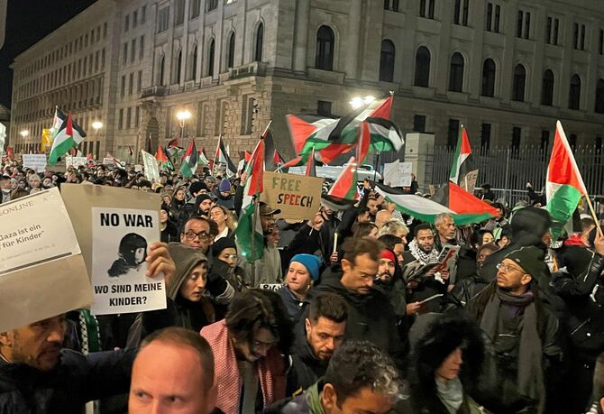 ドイツ・ベルリンで行われた親パレスチナデモ=2023年11月4日