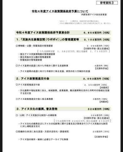 - 別に今の人は、アイヌを差別しようなんて思っていない。逆にカッコいいかもと思っているだろうと思う。結局、移民と同じでまともな人は、自分の中で祖国なりを尊敬し、日本社会に溶け込む努力をしていると思う。それもなく、権利だ、自由だ、差別だ、って、暴れ回る。だったら、いらないよ、ってなる