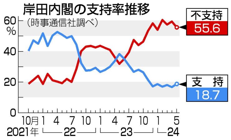 【ひと目でわかるグラフ】岸田内閣の支持率推移 昨年12月に事件対応へ「火の玉になる」と宣言した首相が「火だるまになった」(立憲民主党中堅)格好だ。22日に始まる衆院政治改革特別委での改正案審議で自民は苦しい対応を迫られそうだ。  「当事者が一番遅くて内容のないものを出す。反省がないのではないか」。予算委で野党の1番手に立った立民の野田佳彦元首相は自民が提出した規正法改正案をこう酷評。「顔を洗って出直して来いとたんかを切りたい」と迫った。  立民などがまずやり玉に挙げたのが実態解明の「不十分さ」だ。野田氏は安倍派に影響力を持つ森喜朗元首相に対する首相の聴取を問題視。森氏が首相は体調などを聞いただけだったと月刊誌で暴露したことを取り上げ、「これではご機嫌伺いだ。政治不信をあおる」と再聴取を要求した。