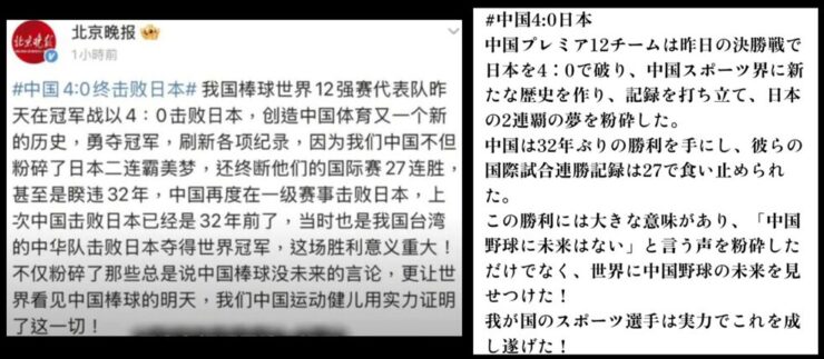 - 台湾の優勝は、アジアの野球にとっても大きな出来事だ。それを中国が自分たちのもののように報じるのは理解に苦しむ。