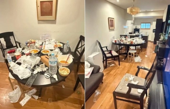 大阪府で民泊を利用した中国人観光客が、部屋を「ゴミ屋敷」にして帰ってしまったと香港や台湾、韓国のメディアが報じている。中国人客5人が11月に3泊した後の部屋の様子を、民宿側がSNSに投稿した。報じられた写真では、カップ麺や空の食品パックが散らかったままのダイニングテーブル、洗面台の床に乱雑に放置されたバスタオル、ゴミのようなものが置かれたソファや椅子が確認できる。