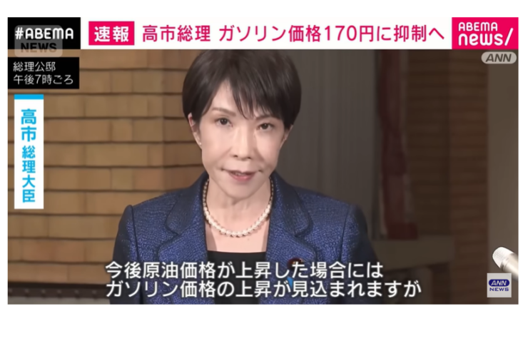 - ガソリン価格170円程度に抑えると首相[47NEWS]※動画26/03