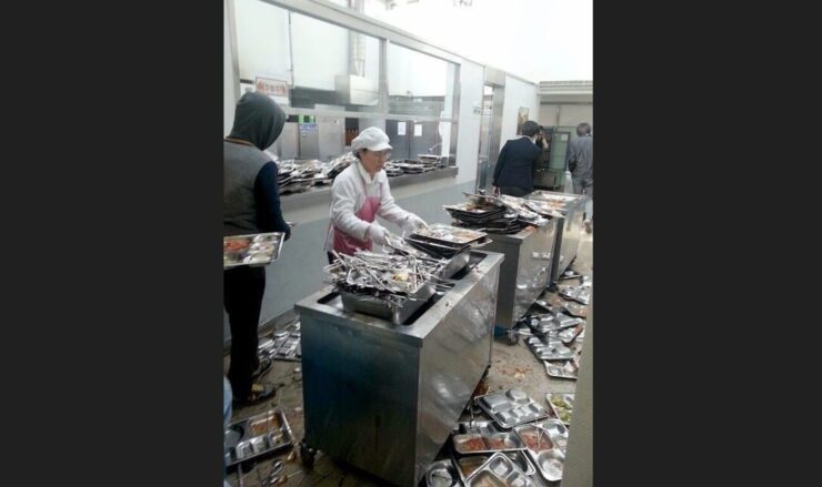 【韓国の学食の様子】 この民族には、お陰様や助け合いや感謝の気持ちはないのか?日本では絶対に見ない光景です。