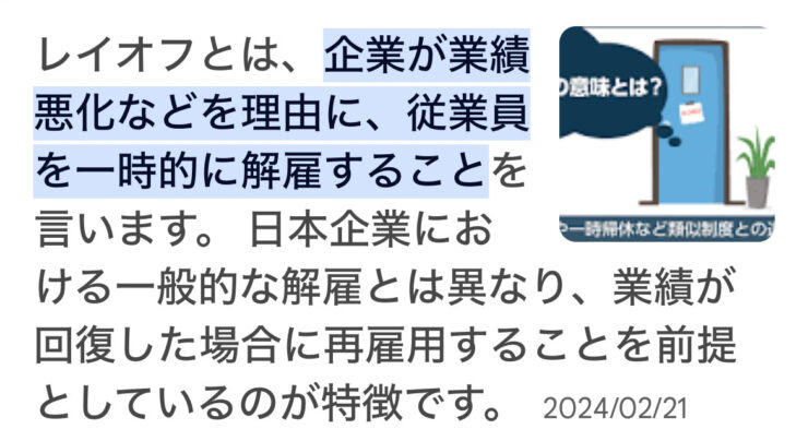 • 雇用の流動性については賛成だがレイオフという経営側に立った言い方には賛同できない。 まずは中途採用で就職出来るようなしすてむにすべき。日本企業がそれをやらないのなら年度の新規雇用者の内の半分は中途採用者にする様に大企業などには国が規制を掛けるべき。その上で解雇規制を撤廃すべきだと思う。
