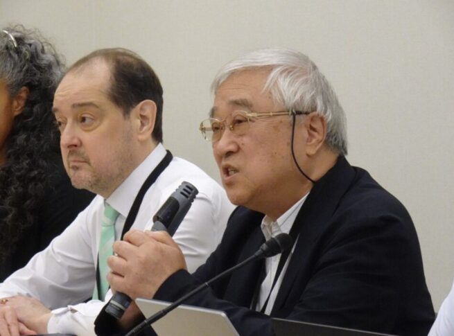 入管法改正案反対集会で発言する横浜華僑総会の曽徳深顧問=国会内で2024年6月10日午後0時8分、和田浩明撮影