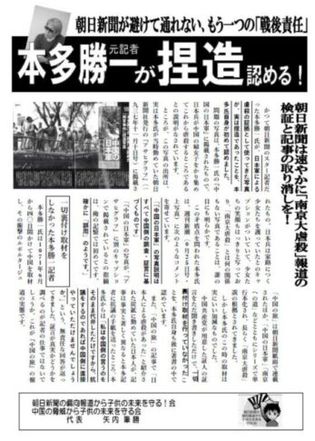 - 日本の名誉が損なわれた原因の一端に、朝日新聞の報道があるという指摘は無視できません。この事実をもっと公にするべきです。