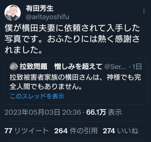 私は日本国民の一人として、拉致被害者ご家族の痛切な心を踏みにじる、悪質な輩、 #立憲民主党 #有田芳生 を絶対に許さない!