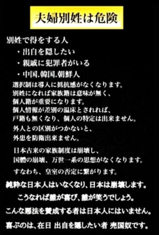 【選択的夫婦別姓】“選択的”に潜むワナ!狙いは家族解体と戸籍制度廃止で日本人をバラバラにすることでは?/山下議員『家族の姓まで別々になるのは嫌だ、そういうニーズに応えられていない』