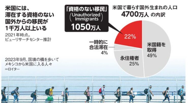 【グラフでみる】米国の移民問題とは 資格のない移民が1千万人以上