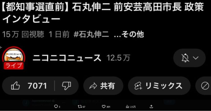 - 高評価の数よ! 他候補者100いかんのに、石丸だけ7000!?ありえんだろ!