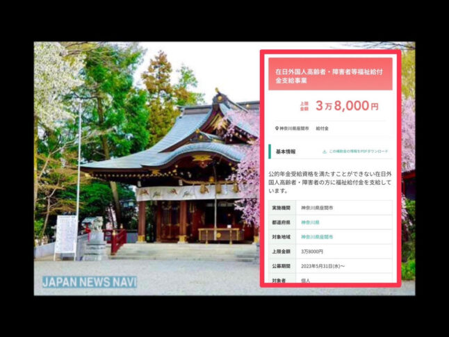 【驚愕】国民年金未加入の『在日外国人高齢者・障害者』に給付金を支給!月額3万8,000円→年間45万6,000円(例:神奈川県 座間市)全国で発覚!