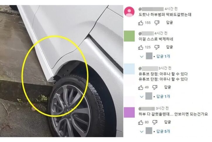 ユーチューバーが車を後退させる過程で、車両の下部が削られるような「ガリッ」という音がした。段差から脱出したユーチューバーは車の傷を確認し、「幸い目立った傷は見当たらない。大丈夫だ」と安堵した様子を見せた。