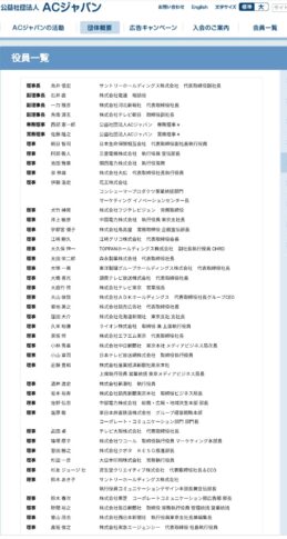 • ACは広告に関わる企業が公共マナーなど社会貢献のために設立されている非営利団体ですので広告主や代理店が会員となってあるのはあたりまえです。ご指摘の視点はずれています