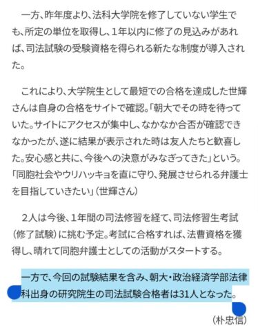 - なぜここまで朝鮮大学の司法試験合格率が高いのか、しっかりと検証すべきだ。