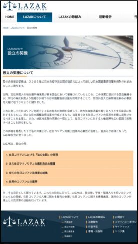 LAZAKの設立の契機となったのは、2001年に日本で新たな国籍取得法案が検討されたことだった。この法案は、現行の帰化手続きを簡素化することで、外国人が日本国籍を取得しやすくするものであり、外国人参政権の必要性を低下させる狙いがあった。これに対し、在日コリアン弁護士22名が声明を発表し、「当事者である在日コリアンの意見を反映させるべき」と主張しながら、外国人参政権の必要性を訴えた。また、「植民地支配の清算の一環として、在日コリアンの人権保障を広く実現すべき」とも訴えているが、これは単なる人権問題ではなく、日本の法制度に対する根本的な介入と捉えることもできる。