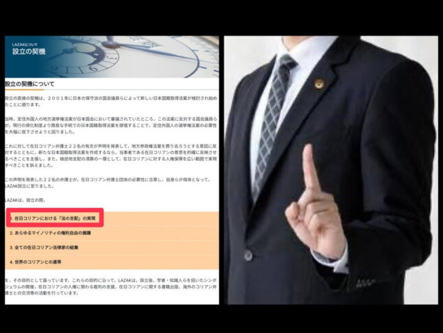在日コリアン弁護士協会(LAZAK)が掲げる「在日コリアンにおける法の支配の実現」というスローガンには、日本の法制度に対する重大な影響が含まれている。この団体は、外国人参政権の推進を目的の一つとしており、日本の主権や政治制度の根幹に関わる重要な問題を提起している。