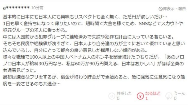 個人的には、外国人労働者の増加そのものは避けられない流れだと思う。しかし、それをどのように活かすかは、日本側の対応次第だ。労働環境を整え、外国人労働者との共生を進めることで、経済的なメリットを最大化することが求められる。