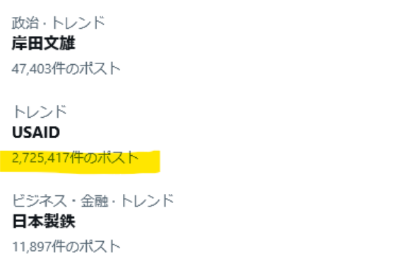 XのトレンドでUSAIDが272万件のポスト。こんなの見たことない。しかしテレビはスルー。