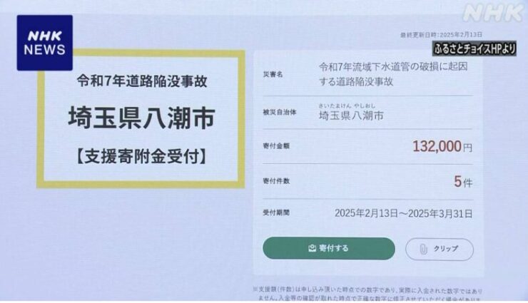 大規模な道路陥没で、今も影響が続いている埼玉県八潮市では、ふるさと納税を活用した寄付の受け付けを始めました。