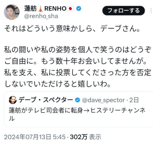 「ヒステリーチャンネル」といわれて怒りの蓮舫さんが話題ですが、ここで「緑のタヌキ」「増税メガネ」「アベ政治を許さない」に対する各人の反応をみてみましょう