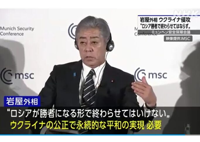 岩屋外務大臣は、訪問先のドイツでミュンヘン安全保障会議に参加し「ウクライナ侵攻をロシアが勝者になる形で終わらせてはいけない」と指摘した上でウクライナの公正で永続的な平和の実現が必要だという考えを示しました。