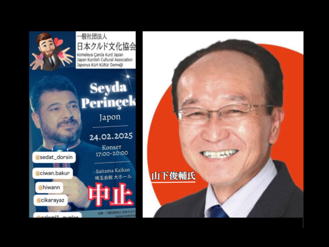 【山下俊輔氏】(反対等電話により)埼玉会館、某クルド人団体主催のコンサートは主催者の申し出により中止に