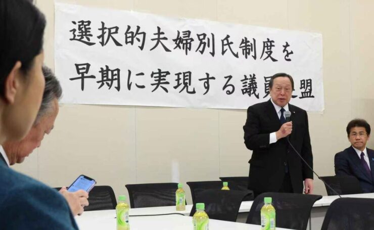 自民党の有志議員でつくる「選択的夫婦別氏制度を早期に実現する議員連盟」(会長・浜田靖一元防衛相)は26日、国会内で総会を開いた。井出庸生事務局長によると、12人の現職議員が出席した。