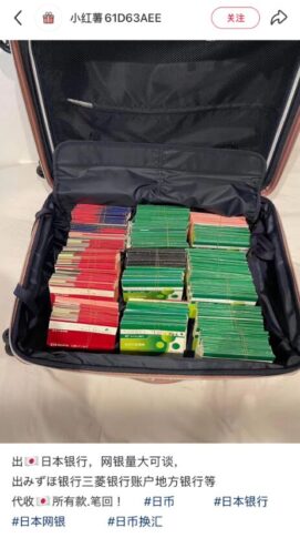 近年、X(旧Twitter)やWeChatなどのSNSを利用して、日本の銀行口座を売買する動きが見られる。「高価買取」「即日現金化」などと宣伝し、日本の銀行口座を募集する投稿が散見される。