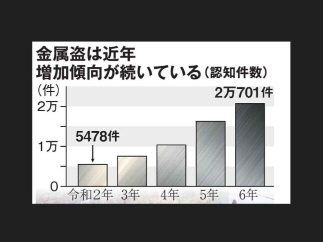 このような犯罪が多発している背景には、金属価格の上昇や、盗んだ金属が簡単に換金される環境があることが挙げられます。特に銅が高額で取引されていることが、この犯罪の加速に繋がっているのでしょう。金属はその性質上、非常に換金しやすく、犯罪者にとっては「おいしいターゲット」となりやすいのです。