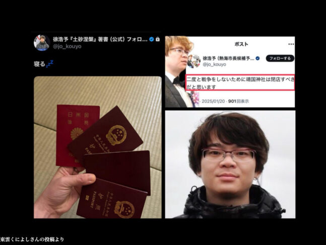 熱海市長選に立候補している徐浩予は、なぜ3冊の中国パスポートと1冊の日本パスポートを持っているのでしょうか?