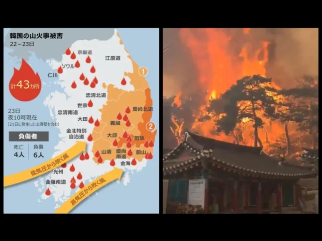 韓国43カ所で同時多発的に山火事発生、消防隊員4人死亡…政府が「国家動員令」発令