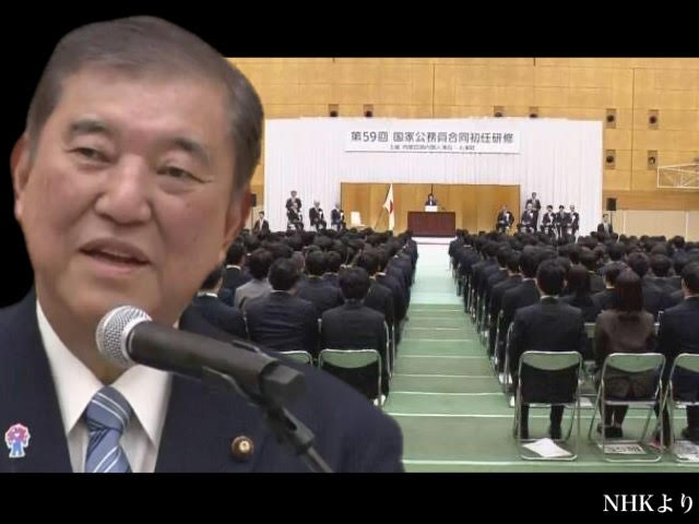 石破首相 新人国家公務員に訓示「国民のためにともに働いて」