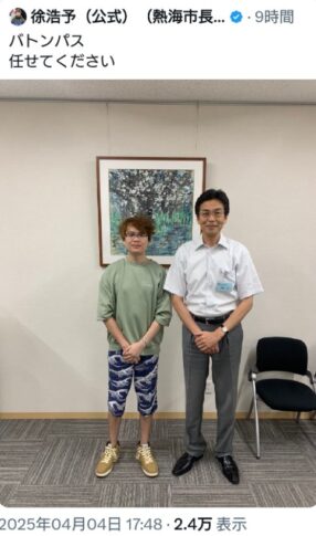 【悲報】現職の熱海市長の後継者みたいに印象操作する様なポストをする、中国からの帰化人・徐浩予氏がこちら