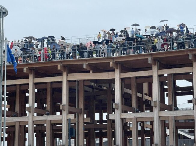 今回の万博のテーマは「いのち輝く未来社会のデザイン」。その理念に合わせて、自然素材を使った建築が選ばれたのかもしれません。たしかに、鉄やコンクリートよりも木材を使うことで、環境への配慮をアピールできるのは分かります。
