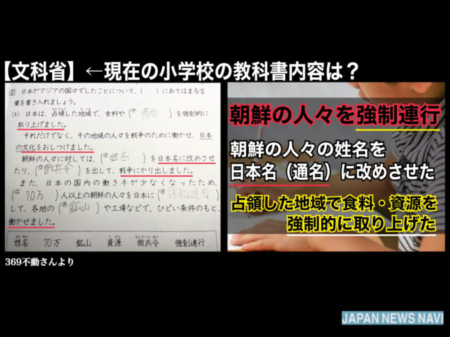 小学校教科書に「創氏改名」「強制連行」「文化の押しつけ」などの記述 文科省検定済み教科書に実在