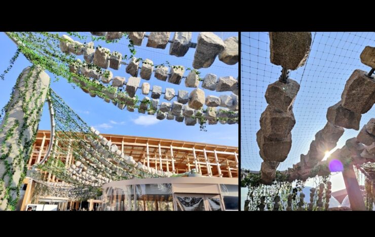 先日、X(旧Twitter)で見かけたある投稿が強く印象に残りました。大阪・関西万博の「休憩所2」とされるパーゴラ(日よけ棚)のデザインに対し、一部のユーザーが安全面で懸念を示していたのです。その画像を見ると、確かに重そうな石が空中にいくつも吊られており、それがアートの一環として構造物に組み込まれていました。見た目としては壮観で、自然素材を用いたデザイン性の高さは評価できるものの、正直なところ、第一印象としては「本当に大丈夫なのか」という不安が拭えませんでした。