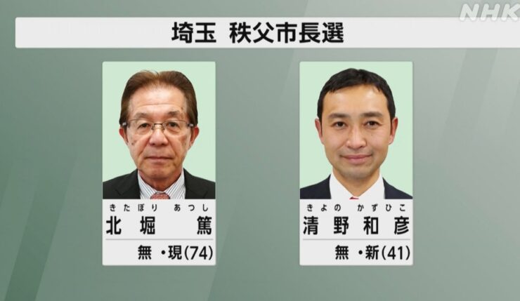 任期満了に伴う埼玉県秩父市長選は20日投開票の結果、無所属新人の元市議清野和彦氏(41)=無新=が、再選を目指した無所属現職北堀篤氏(74)=自民、公明推薦=を破り、初当選を果たした。同市は県内でも保守地盤が強いとされ、自公両党は夏の参院選を控え、党勢回復を急ぐ構え。