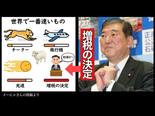 最近、SNS上ではある画像が大きな話題となっていました。内容は非常にシンプルながら、思わず納得してしまうものです。チーター、飛行機、光速といった”速さ”の象徴が並べられた中で、最も速いとされたのが「増税の決定」。このブラックジョークに、多くの日本人が共感している様子が伺えました。私もこれを見たとき、笑いながらも心の中で深くうなずいてしまいました。