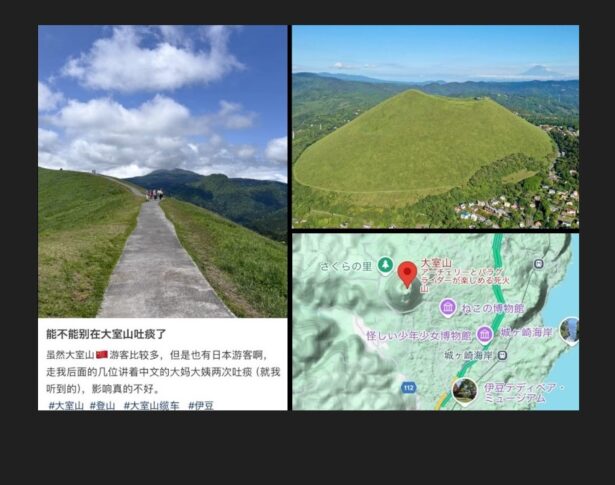 ところが先日、その大室山で中国人観光客があちこちで痰を吐くという行為が繰り返されていたというSNS上の報告を目にしました。それも、一人ではなく複数人による行動であったとのことで、驚きと同時に強い残念さを感じました。さらにその様子を見かねた別の中国人が、SNSで「中国人は大室山で痰を吐くのはやめて!」と訴えたことも、今回の出来事の深刻さを物語っています。
