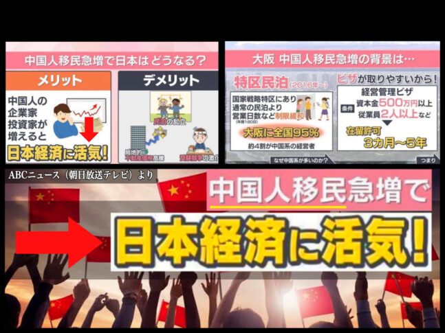 【朝日放送テレビ】中国人移民急増のメリットを「日本経済に活気!」などと放送