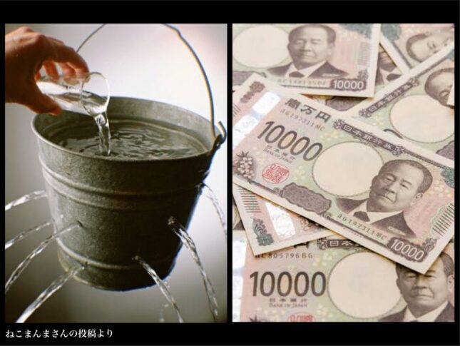 ある投稿がSNS上で話題になっていました。バケツに水を注ぎ続けている画像に「もちろん注いでるのが日本人な」と添えられたコメント。そのバケツにはいくつもの穴が空いており、注いだ水がどんどん漏れている様子が描かれていました。これは日本の税金の使われ方を風刺した表現であり、私自身もその比喩に深く共感しました。