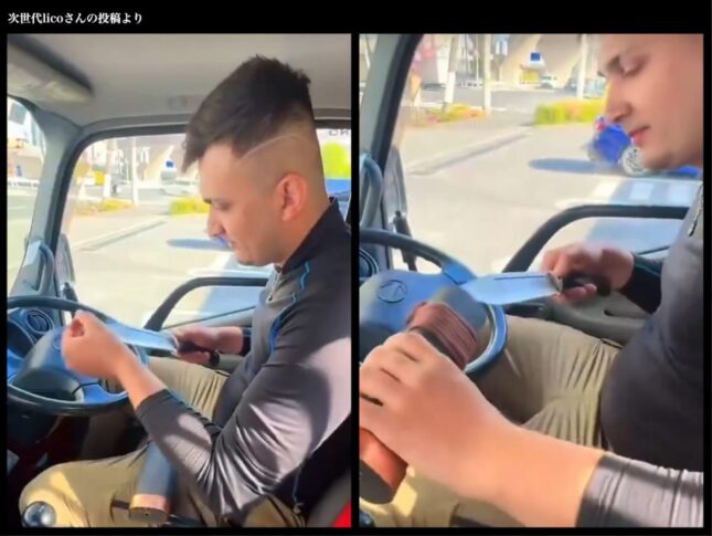 私がこの動画を初めて目にしたとき、正直なところ、目を疑いました。日本国内で撮影されたとみられる車内の映像で、運転席に座る男性が刃渡りのある包丁を手に取り、自分の腕の体毛を剃っているという場面でした。投稿者本人のアカウントから公開されたものであることから、いたずらや誤解ではなく、意図的に発信されたものであると考えられます。