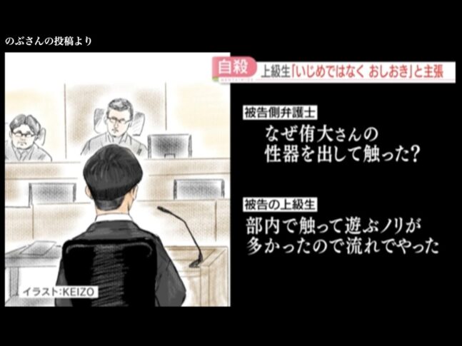 「いじめではありません。体を粘着テープで畳に貼り付けて、性器を出して触って、動画で撮影して、SNSで拡散したのも、全部おしおき、遊びでした」