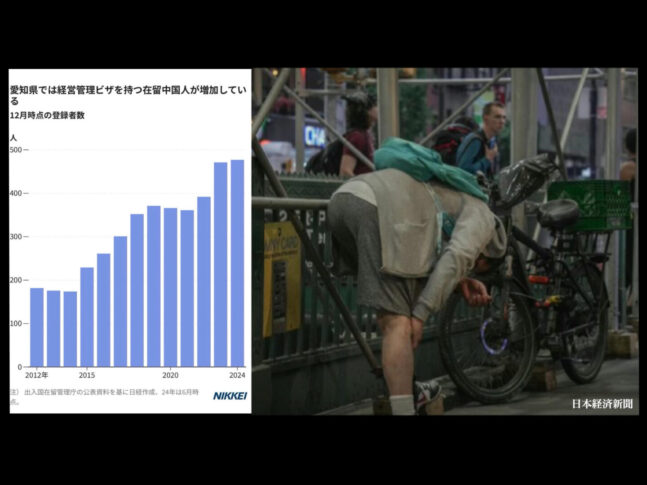 愛知県内の経営管理ビザを取得した中国人は、この10年で急増している。