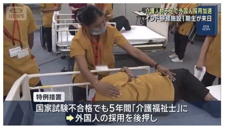 「報酬、待遇は基本的には日本人の職員と全く同じになっている」(インドに研修施設を設置した理由は)「将来性、持続性を考えるとやはり世界一の人口を有するインドというのは魅力的に感じている。」 この企業は、インドから年間60人、外国人全体で100人規模の採用を計画しています。 いかに定着させるかが課題です。 「こちらで研修を受けているおよそ30人全員が介護福祉士の国家資格取得を目指している」 政府は国家試験に不合格でも5年間、介護福祉士として働ける特例措置で外国人の採用を後押ししています。
