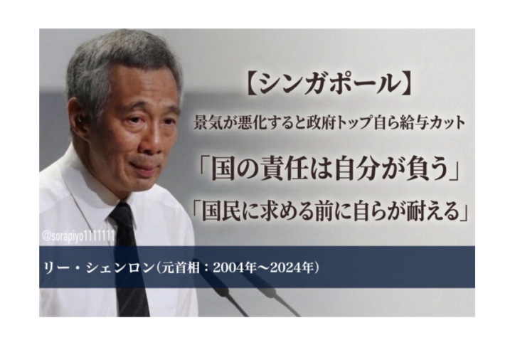 【シンガポール】景気悪化で、政府トップ自ら給与カット「国の責任は自分が負う」「国民に求める前に自らが耐える」過去発言が再び注目