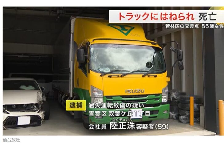 【宮城】信号はいずれも青…横断歩道の女性はねられ死亡 韓国籍のトラック運転手(59)を逮捕「歩行者に気づくのが遅れた」などと供述https://t.co/Wozc556Gm0 pic.twitter.com/CSWihnJT7D