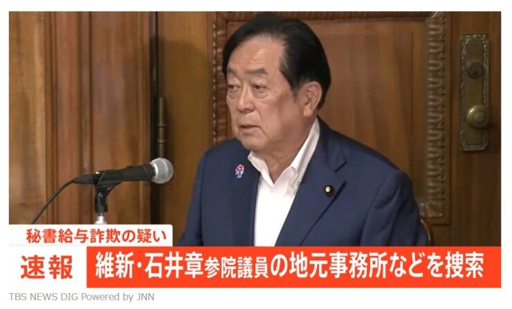 【速報】維新・石井章参院議員の事務所捜索 秘書給与詐取の疑いで東京地検特捜部[TBS/動画]