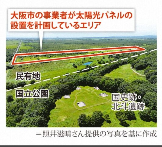 地元選出の国会議員や道議に開示された資料によると、大阪市の事業者は、今回キタサンショウウオの幼生が確認された土地を含む約9・8ヘクタールに出力1999・9キロワットのメガソーラーの設置を計画している。