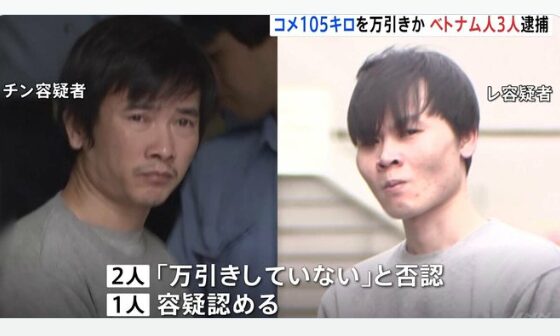 • 米を105キロ盗んでおいて万引きって呼ぶのはもう無理があるだろこれは完全に窃盗団のやり口だよね